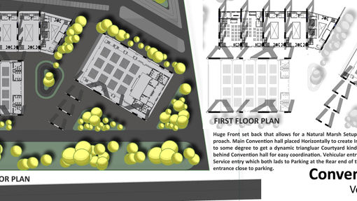 This large structure finds its inspiration from Human structures holding together for a cause or event. This Sculptural idea shapes and scales itself into a vast multi functional conventional area by creating clear open plan and high ceiling qualifying more light and social interactions.
